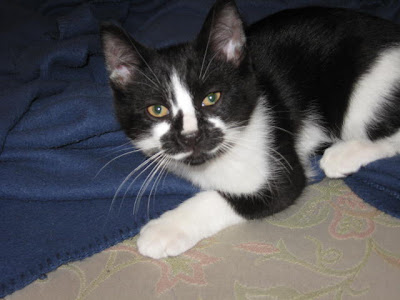 And...once again...he has to be the sweetest cat I've ever met. He's settled into his routine and sleeps on my head every night.